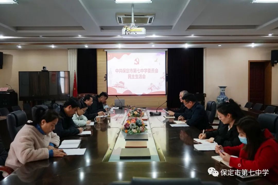 保定七中党委王振山书记主持会议。按照上级党委统一安排,会前认真组织学习,广泛征求意见,深入谈心谈话,认真撰写对照检查材料,为开好民主生活会做了充分准备。