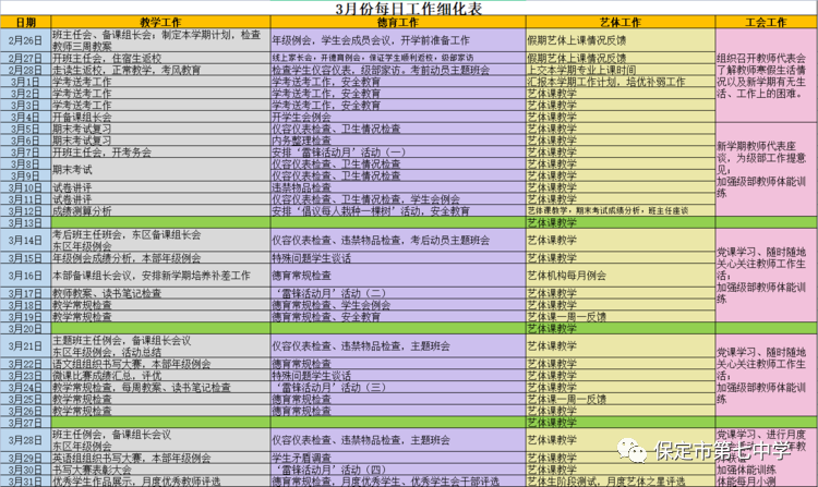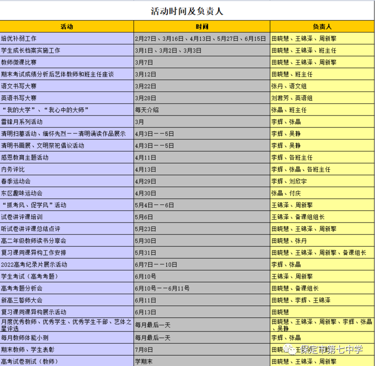对于教学教研,田主任谈到,根据吕校长所倡导的月月有计划、周周有安排、天天有行动、过程有评价——保定七中新学期全面推进精细化管理,全面打造高品质教育,全面构建面向每一位学生提分提质的高效教学模式,要求备课组长,班主任,根据级部计划,教导处,教研处工作安排,制定备课组长和班主任的学期工作总规划和每月,每周的计划框架。